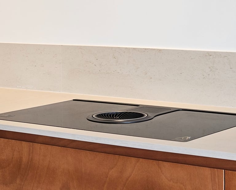 La plaque de cuisson affleurante pousse encore plus loin l’intention : un design minimaliste, sans rupture visuelle, pour laisser les lignes courir naturellement. Tout devient plus fluide, plus propre, plus évident - comme si chaque élément avait trouvé sa place sans effort.